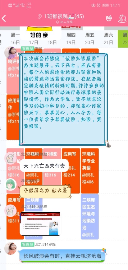 隔着屏幕见到黄书记甚是激动,听了黄书记的课更是心潮澎湃。黄书记用朴素的言语、真实的案例给我们传达出团结奋斗的精神和“天下兴亡,匹夫有责”的家国情怀,虽然隔着屏幕,我也分明感受到了黄书记的党性修养和人格魅力。