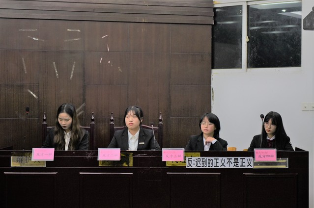 经过初赛、复赛的激烈角逐,2020级思想政治教育师范本科1班和2021级思想政治教育师范本科1班代表队进入决赛。正反双方代表队围绕“迟到的正义是否为正义”这一辩题进行激烈的辩论。双方开篇立论、旁征博引,用灵活的思维和缜密的逻辑推理,找准漏洞、精准出击,紧张刺激的辩论赢得场下阵阵掌声。