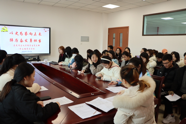 为进一步学深悟透党的理论思想,汲取奋进智慧力量。 1月14日,马克思主义学院学生第二党支部在至静楼南楼414党员活动室开展“以史为鉴向未来 ,踔厉奋发勇担当”主题党日活动。学院学生第二党支部书记喻容及该支部全体学生党员参加。本次主题党日活动由学院学生第二党支部宣传委员李钧滢主持。