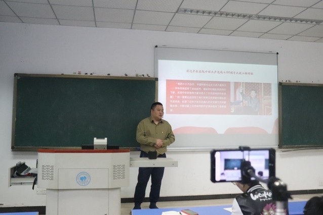 王剑老师从党的十九届六中全会召开的时代背景、《决议》稿的基本框架和主要内容、“五个必由之路”的主要内容、用好有利条件走好“必由之路”四个方面深刻解读了十九届六中全会精神及2022年“两会”精神,回顾了中共百年党史的历史决议,鼓励学员顺应历史潮流、把握时代特点,以奋斗昂扬的姿态迈进新征程,书写青春新篇章。