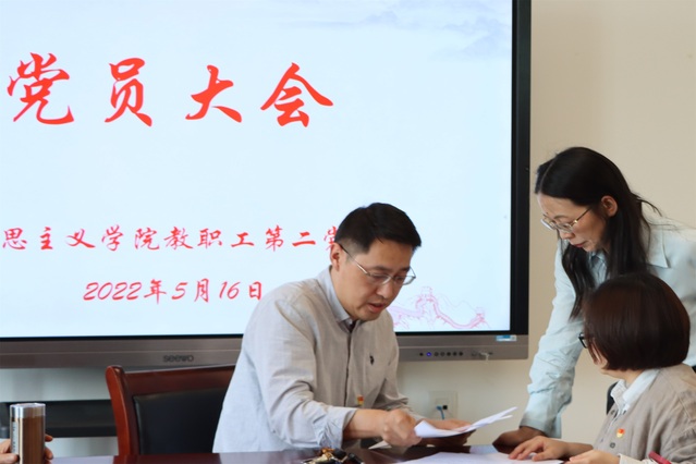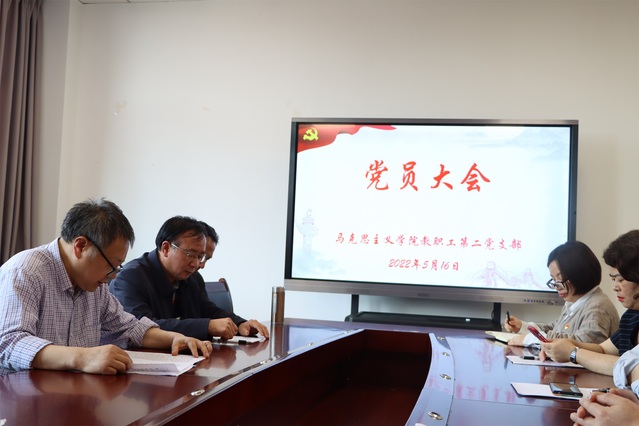 2022年5月16日下午,马克思主义学院教职工第二党支部在至静楼南楼414党员活动室召开2022年第3次党员大会。院党总支专职组织员王川到会指导,会议由学院教职工第二党支部书记文军主持。