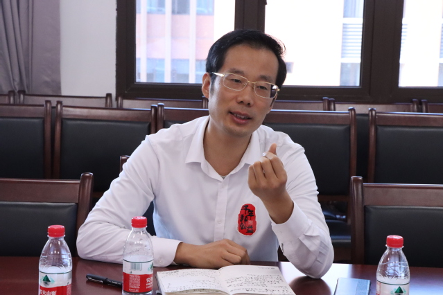 座谈会上,祝国超院长从学院简介、专业设置、师资力量、学科建设等方面介绍了学院的基本情况,并着重介绍了学院英模教育的做法和成就,表达了同意在丰都职教中心合作共建英模教育的愿景。
