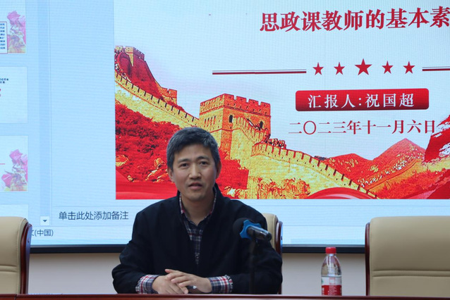为深入贯彻落实党的二十大精神,全面落实习近平总书记在全国教育大会和学校思想政治理论课教师座谈会上的重要讲话要求,落实立德树人根本任务,引导思政课教师用习近平新时代中国特色社会主义思想铸魂育人。马克思主义学院党总支于2023年11月6日下午在至静楼南楼408英模大讲堂组织全体教职工进行政治理论学习,院党总支书记、院长祝国超主持会议。