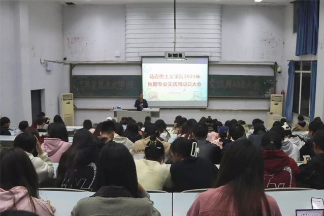 进一步提高思想政治教育专业人才培养质量,扎实开展专业实践教学工作,强化提升学生实践实训能力,1110下午,马克思主义学院于正心01阶梯教室组织召开了2023年秋期专业实践周动员大会。学院副院长谭晓玲,思政系主任田华银,思政学科教师刘河燕、邵丽,办公室教学秘书杨国礼,20222班班导师邹雯妍,学工办辅导员喻容,2021级部分同学及2022级全体同学参加。