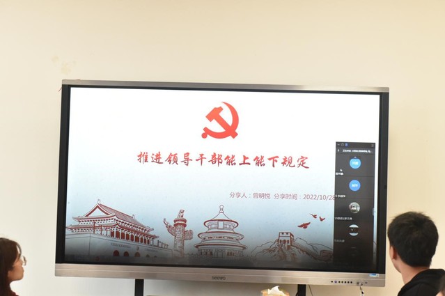 学生党员曾明悦分享了关于学习《推进领导干部能上能下规定》的心得体会。学生党员向骆分享了关于学习《坚持和发展中国特色社会主义要一以贯之》的心得体会。