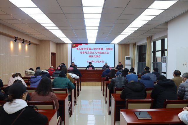 第一巡察组全体成员,组织部、宣传部、纪检监察室、巡察办等相关职能部门以及马克思主义学院党政班子成员,各党支部、职能科室、系级教学负责人,师生代表参加会议。