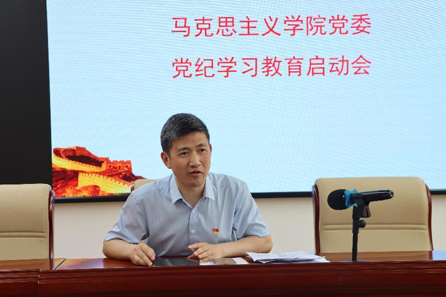 2024年4月15日下午,马克思主义学院党委于至静南楼408英模大讲堂召开党纪学习教育启动会,深入学习贯彻习近平总书记关于党纪学习教育的重要讲话和重要指示精神,认真落实学校党纪学习教育工作。全体教职工党员参加会议。会议由院党委书记、院长祝国超主持。