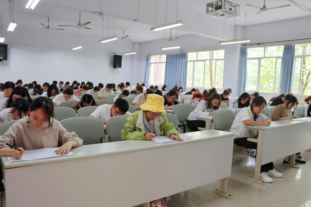 本次知识竞赛采取线下答题的形式展开,内容涉及了《中华人民共和国教育法》、《中华人民共和国国家安全法》等法律法规,经初赛筛选的百余名同学进入决赛。活动伊始,工作人员向同学们讲解了竞赛的规则,随后分发试卷。整场考试秩序井然,答题过程中,同学们严格遵守竞赛要求,他们全神贯注、认真作答,在题海中充分感受法的魅力。