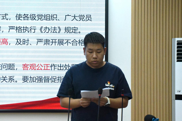 党支部党员柯嘉怡分享学习了习近平总书记在全国教育大会上的重要讲话精神的心得体会;庞博分享学习了中共中央办公厅印发《中国共产党不合格党员组织处置办法》的心得体会;魏婷分享学习了中共中央国务院关于弘扬教育家精神加强新时代高素质专业化教师队伍建设的意见的心得体会。