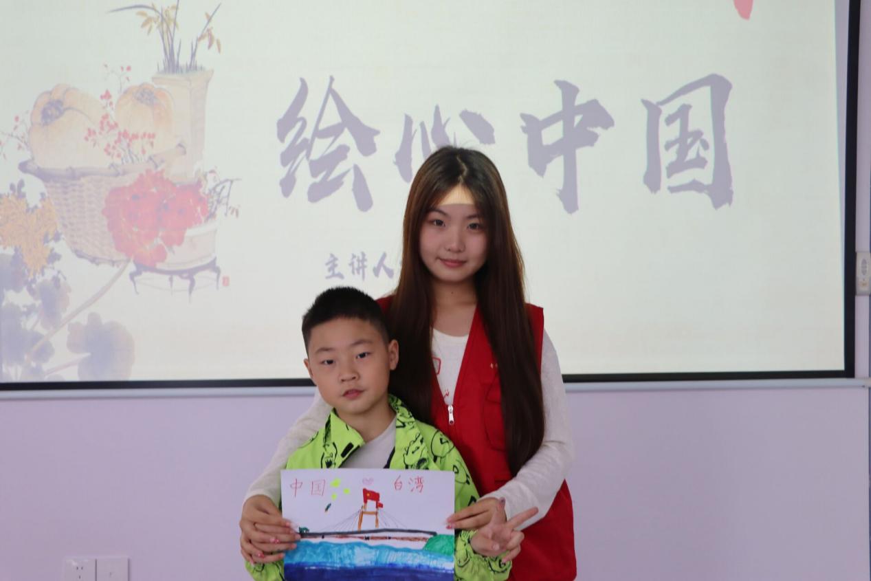 手工绘画环节,志愿者们指导小朋友们以“我爱祖国”为主题创作一幅祖国风景画,用手中的画笔勾勒出心中的祖国,描绘出雄浑壮阔的绚丽画卷,展现出赤诚热烈的爱国情怀。