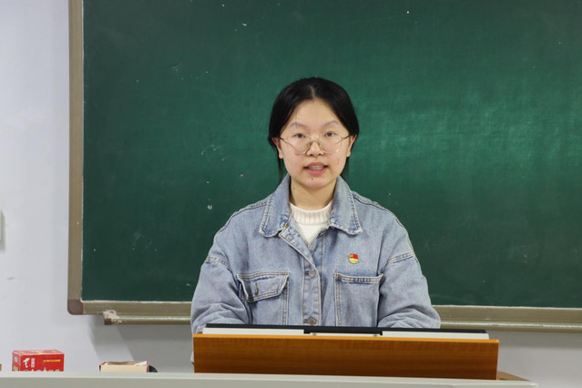 党支部书记喻容传达校党委组织部、宣传部2024年11月师生党支部和教职工政治理论学习内容安排的通知》中的学习内容