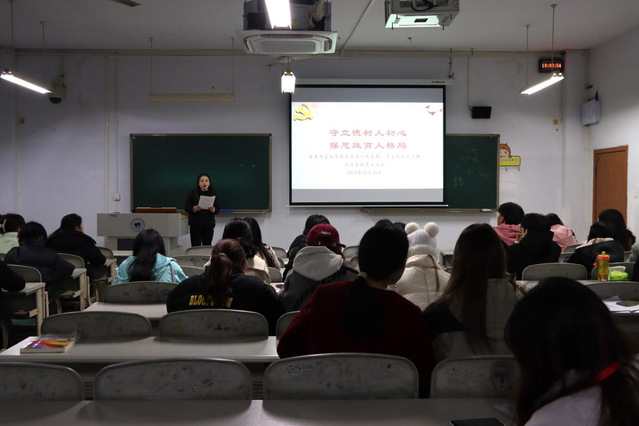 11月26日晚,马克思主义学院学生第二党支部在诚意楼209教室开展“守立德树人初心,强思政育人格局”主题党日暨政治理论学习。学院学生第二党支部书记喻容主持本次主题党日暨政治理论学习。