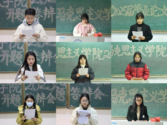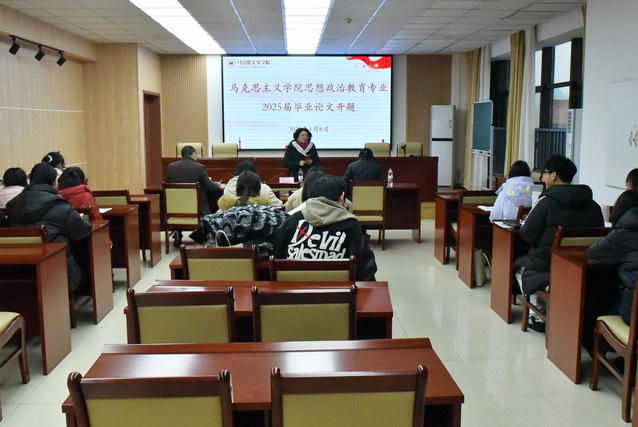 为加强思想政治教育专业人才培养高质量发展,提升2025届学生毕业论文写作水平,为后续的论文撰写工作奠定坚实基础,1月8日至13日,马克思主义学院于正心楼、诚意楼、至静南楼部分教室组织开展2025届毕业生论文开题答辩会。学院全体毕业论文指导教师和2025届毕业生参加。