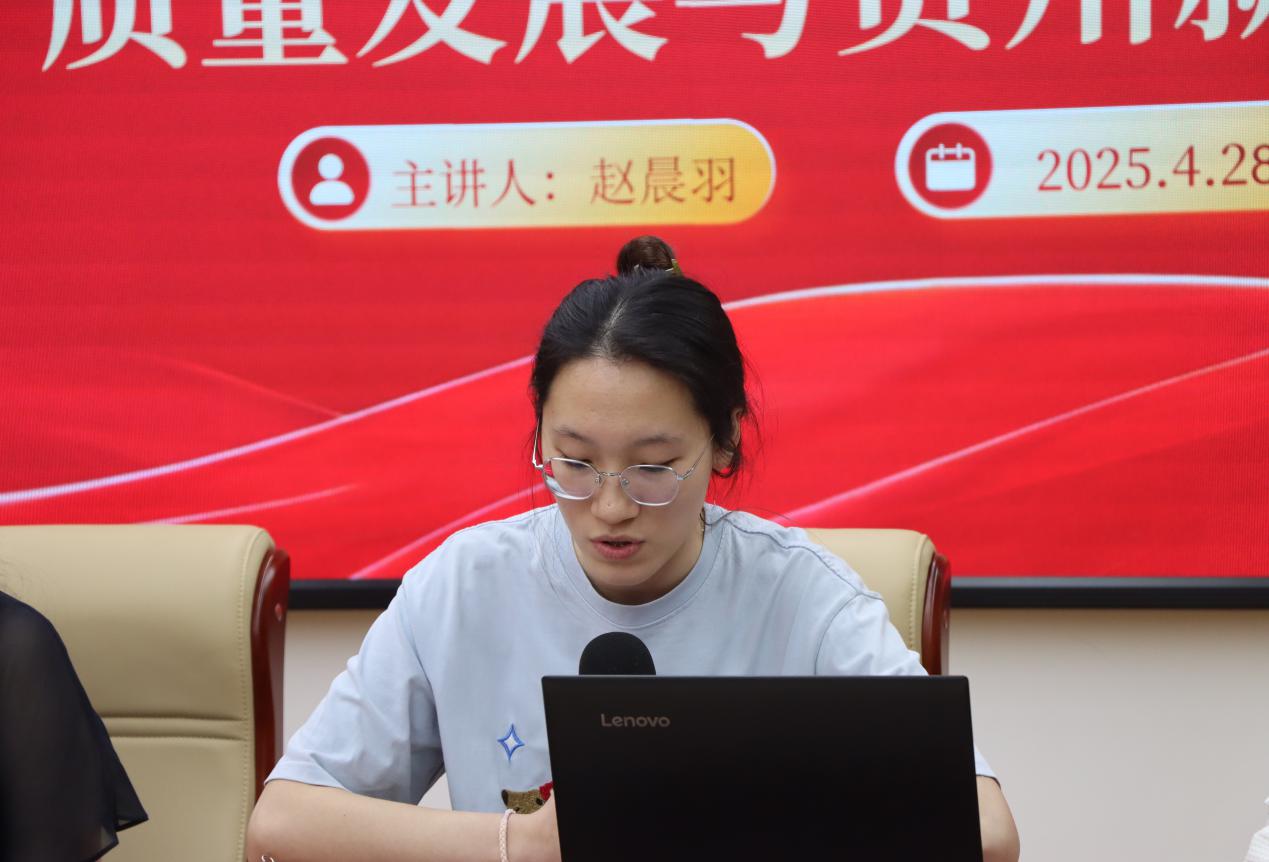 学院学生第二党支部书记喻容传达了《校党委组织部、宣传部关于20254月师生党支部和教职工政治理论学习内容安排的通知》中的学习内容。