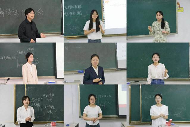 本次考核从教学设计能力、教育技术运用能力、教学实施能力、教学个性、特色与创新等多个维度对学生进行全面考察。考核过程中,同学们精准把握思政课程的核心要点与育人目标,熟练运用案例教学、情景模拟等多元教学手段,紧密结合党的创新理论、社会热点事件,将抽象的思政原理转化为贴近学生生活的鲜活案例,增强了教学内容的思想性与感染力。同时,他们通过条理清晰的思维导图板书,以亲和生动的语言表达、从容自信的教姿教态,充分展现了扎实的思政专业素养和优秀的师范教学潜力。
