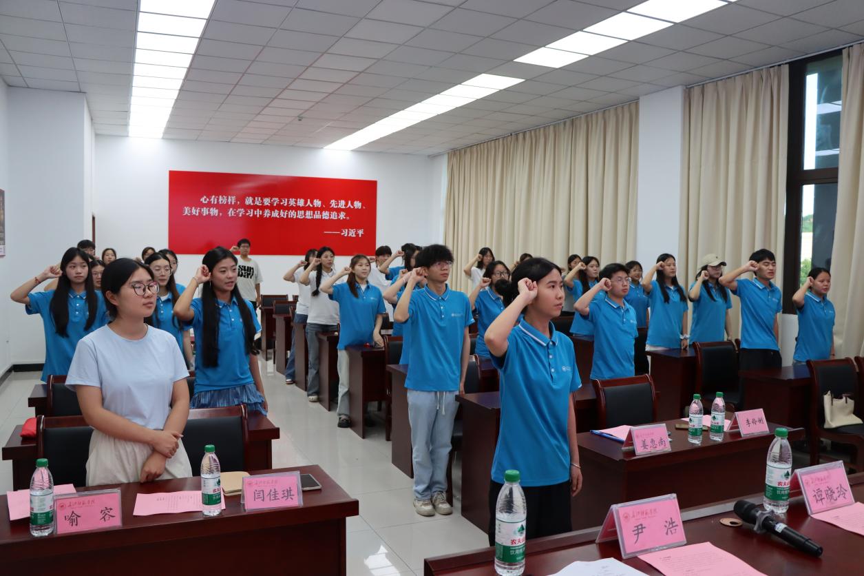 出征仪式上,谭晓玲副院长为三下乡团队授旗。全体志愿者进行出征宣誓,承诺将以“忠诚担当,铸魂育人”为指引,深入基层,走近乡村,用实际行动践行“请党放心,强国有我”的青春誓言。