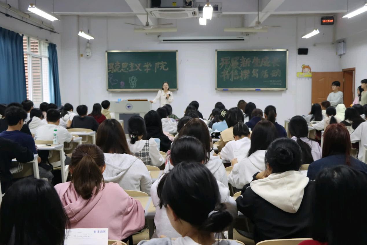 为营造阳光积极的校园文化氛围,帮助新生更好地适应大学学习和生活,10月15日上午,马克思主义学院于诚意楼208教室开展以“逐梦青春,强国有我”为主题的新生成长书信撰写活动。此次活动由学院学工办辅导员喻容主持,2025级全体新生参加。