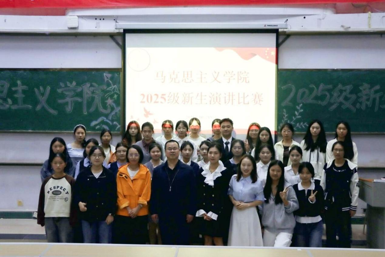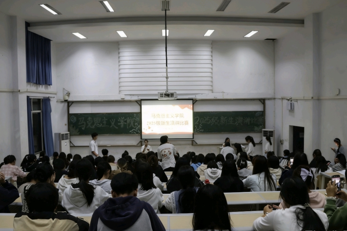 为弘扬新时代榜样精神,引导广大学生树立远大理想、锤炼高尚品格,10月19日晚,马克思主义学院于诚意楼01阶梯教室举办2025级新生演讲比赛决赛。学院形势与政策教育教研室主任文军,学工办主任、团委书记杨晓艳,2024级思想政治教育师范本科2班班导师闫佳琪,2025级思想政治教育师范本科1班班导师姜惠南,学工办辅导员喻容担任评委,2025级全体同学参加。