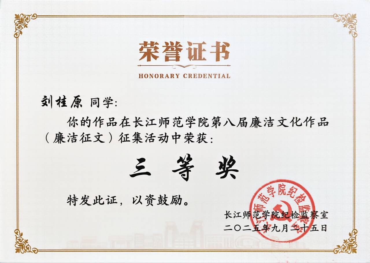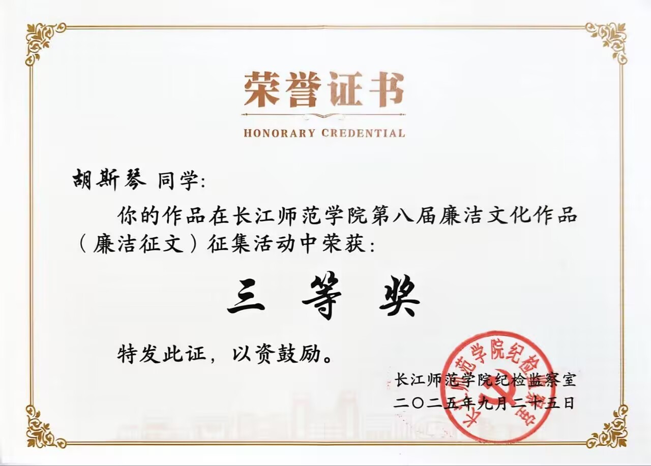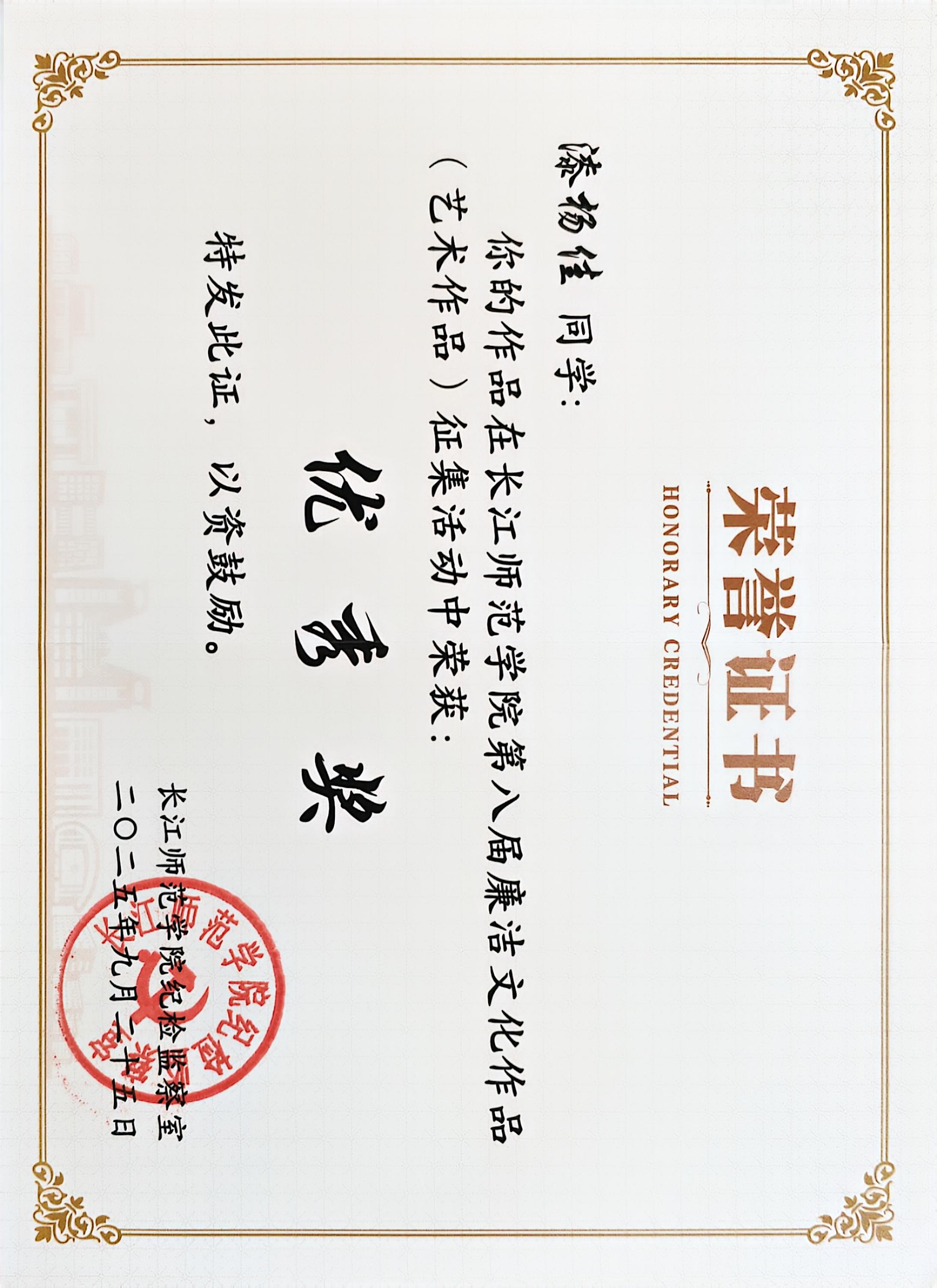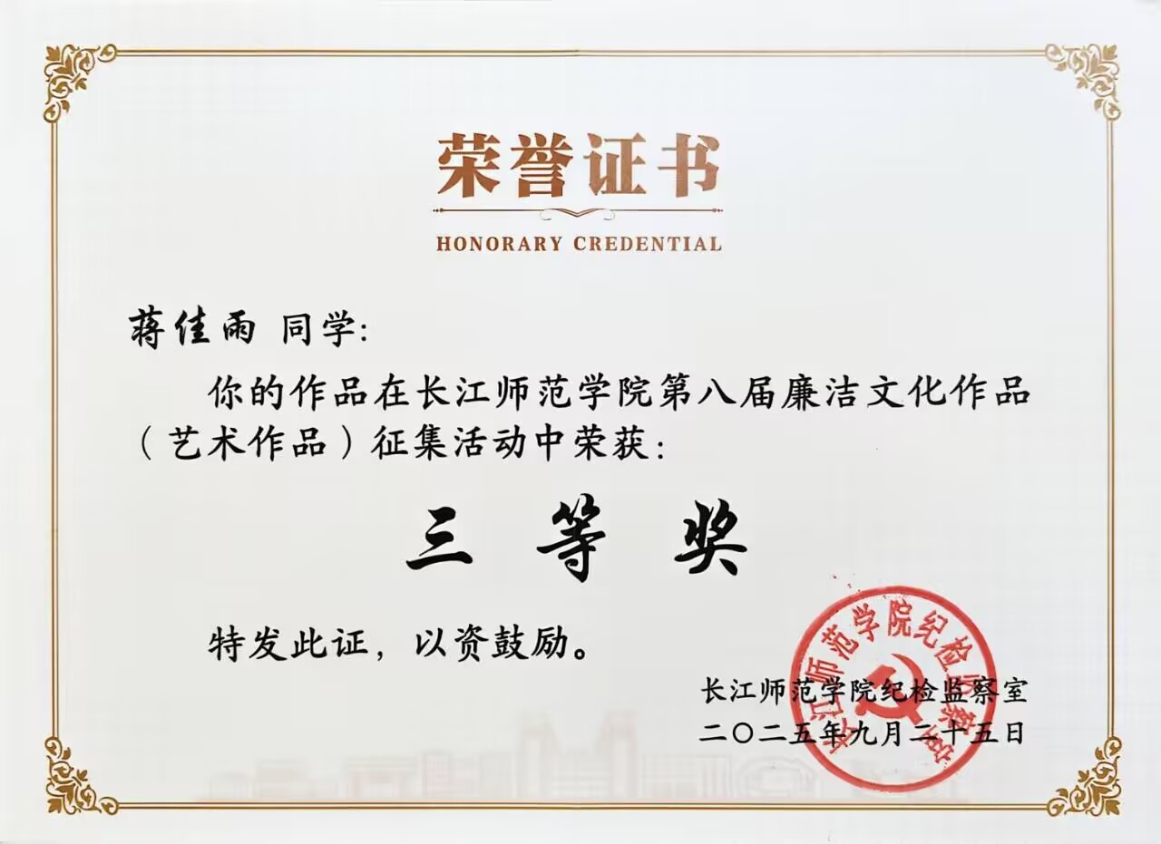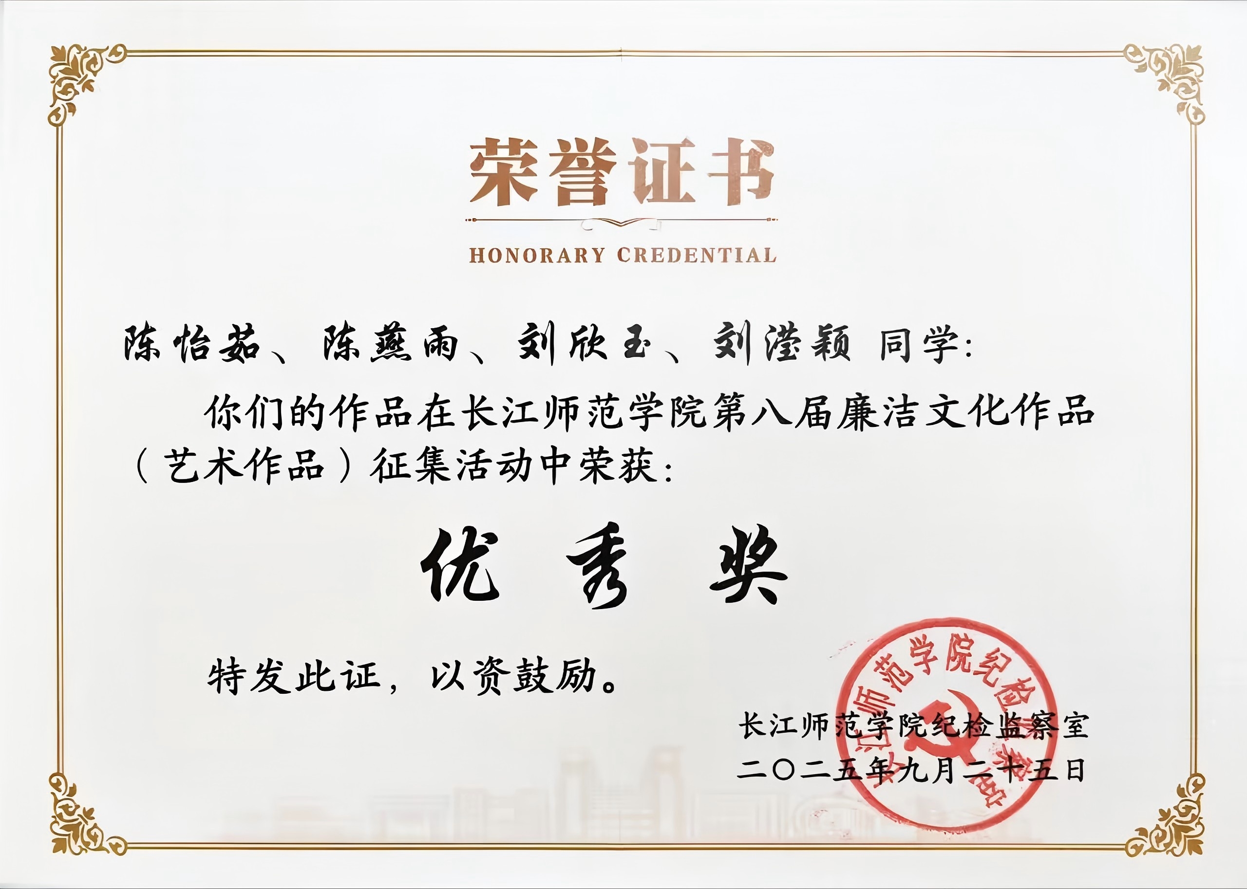 2025年9月25日,院党委推荐的作品荣获3个三等奖、7个优秀奖,进一步推动清廉学院、清廉支部建设提质扩面,用廉洁文化艺术精品涵养校园文化,教育引导全院师生以清正廉洁强基固本、以廉洁文化启智润心、以高尚道德砥砺品格。