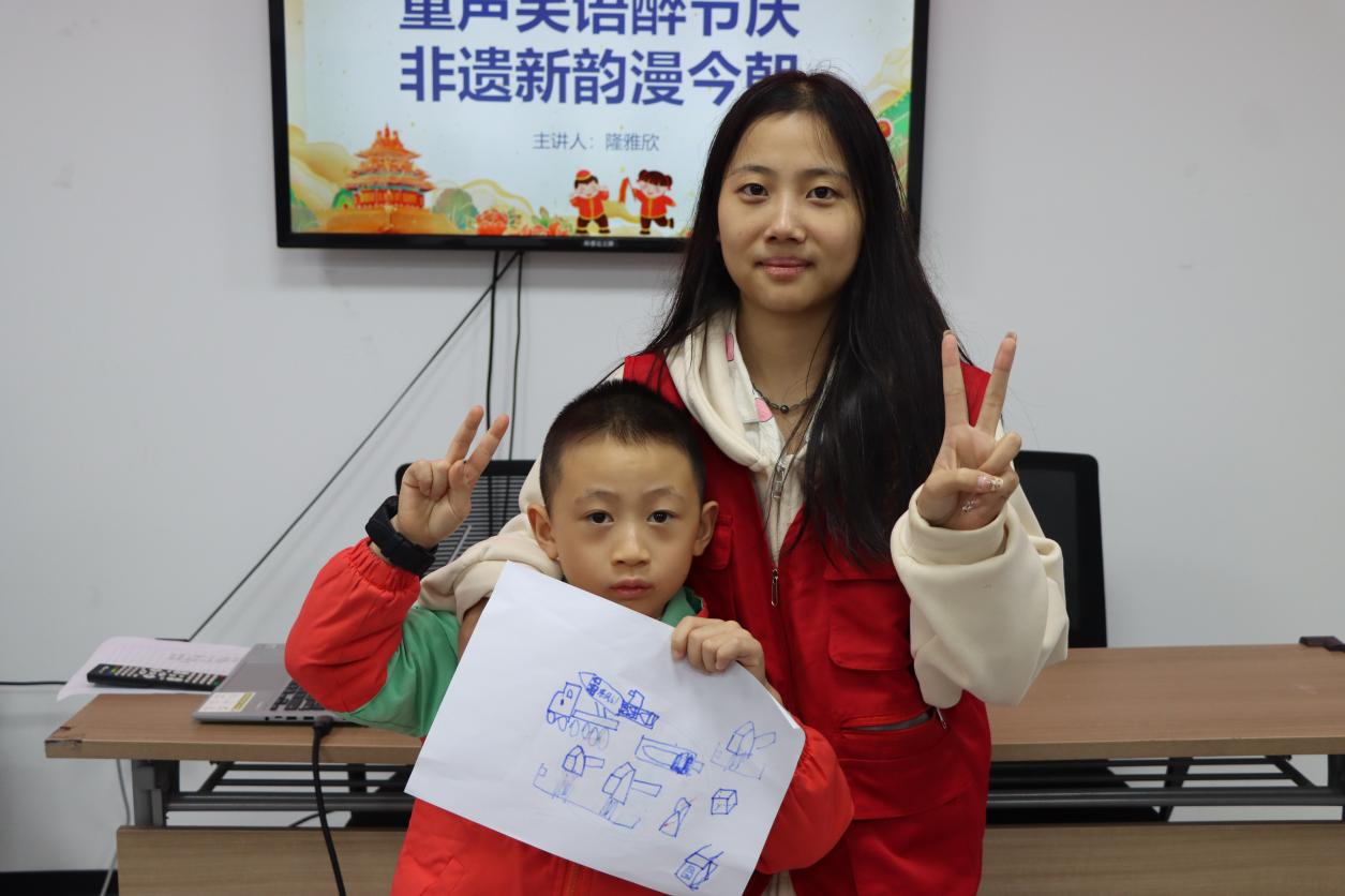 为引导儿童树立文化自信和正确的价值观,激发爱国情怀,弘扬中华优秀传统文化,10月25日上午,马克思主义学院青年志愿者服务团在涪陵区马鞍街道大鹅社区开展“童声笑语醉节庆,非遗新韵漫今朝”大鹅周末课堂系列特色主题教育活动。