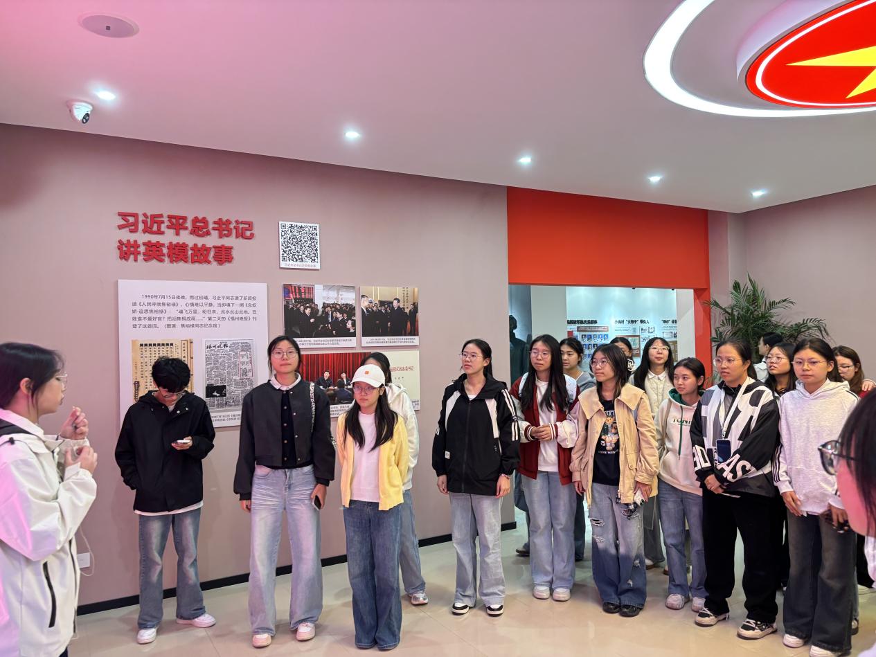 10月23日晚,马克思主义学院组织2025级全体新生参观英模教育馆。英模教育馆讲解员陈燕雨、毕文婧、邹宛霖全程讲解。