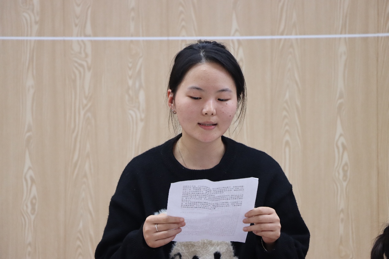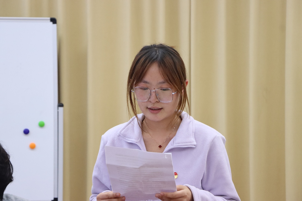 喻容对本次主题党日活动进行总结。她向全体党员提出三点建议:一是深耕实践沃土,在实习调研中自觉运用党的创新理论破解现实难题,检验真理力量;二是平衡学业与党性,争专业标兵,抓党课学习,实现理论素养与实践能力双优并进;三是锚定国家需求,将个人规划融入时代蓝图,以实干担当实现社会价值。