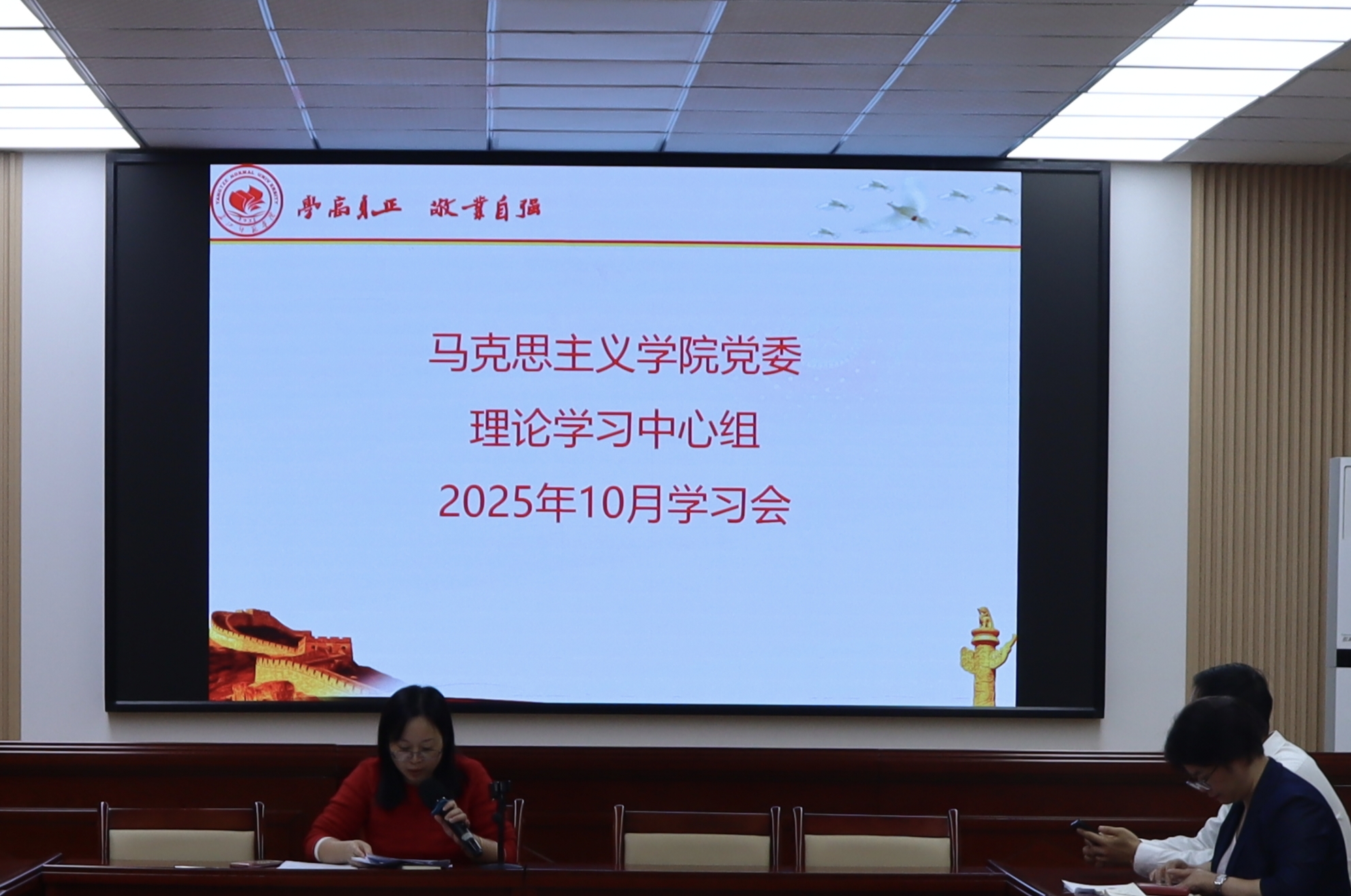 20251024日下午,马克思主义学院党委在至静楼南楼408举行了理论学习中心组202510月学习会。院党委副书记付亚云主持会议,院党委理论学习中心组全体成员参加会议。