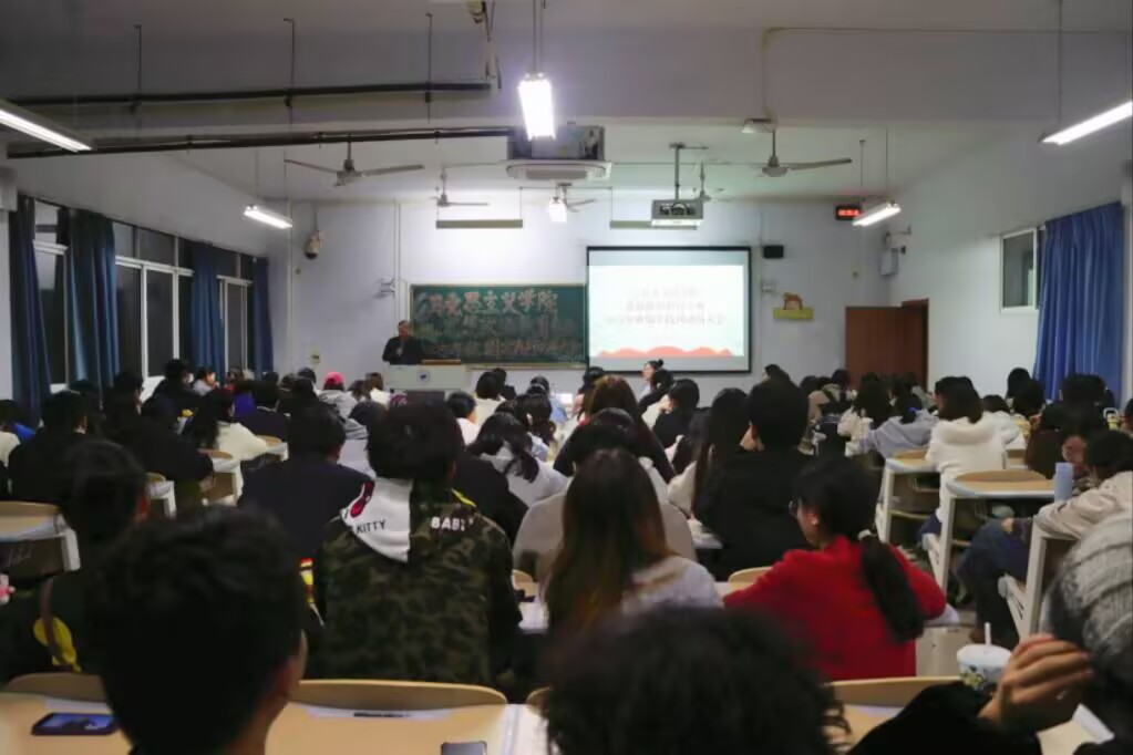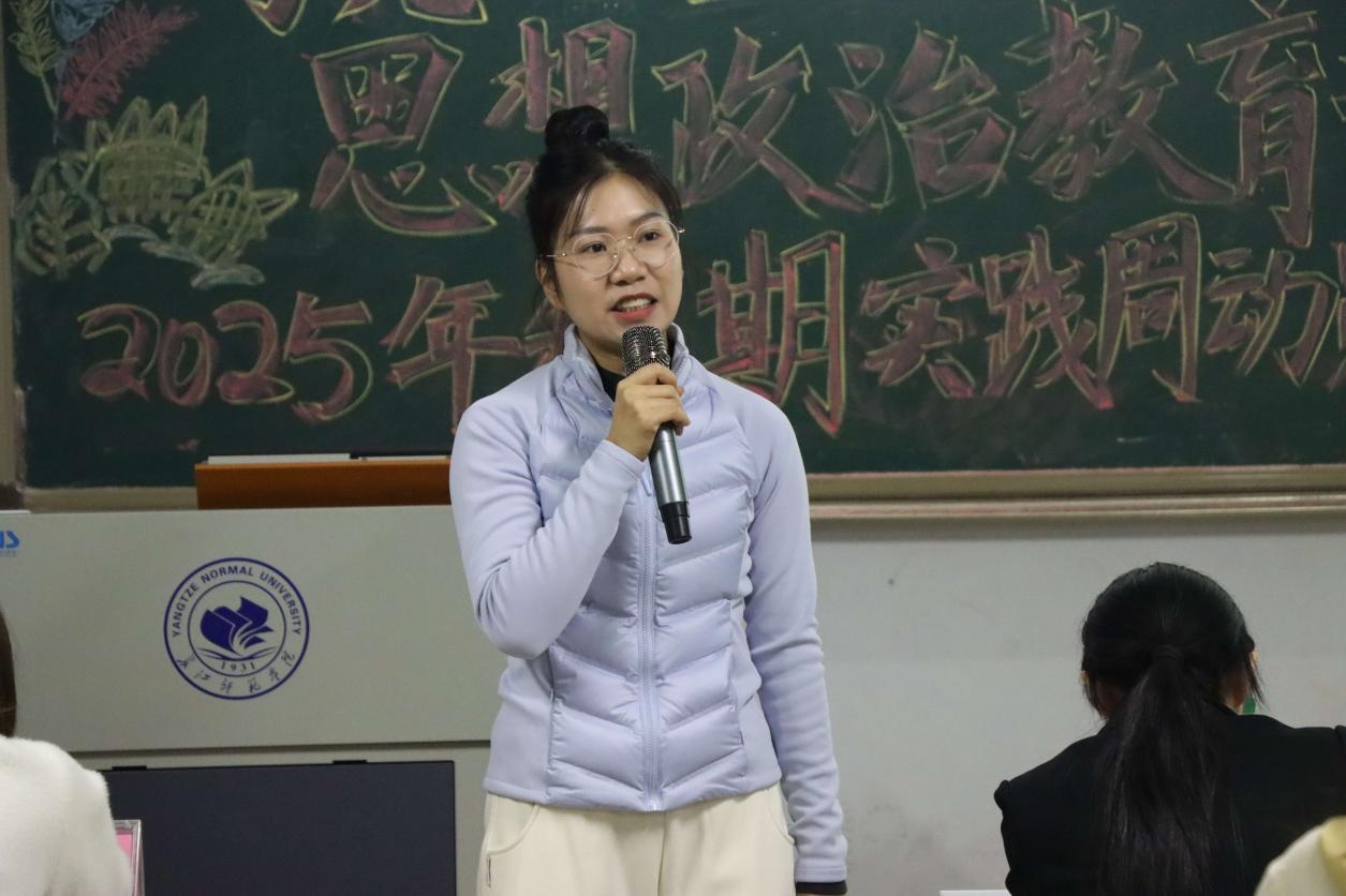 为推动实践周教学工作有效落实,进一步提升师范生的教学能力、综合能力,11月11日下午,马克思主义学院于诚意楼310教室组织召开2025年秋期专业实践周动员大会。学院副院长谭晓玲,思想政治教育系主任田华银,学工办主任、团委书记杨晓艳,2024级思想政治教育师范本科1班班导师李嫚,2024级思想政治教育师范本科2班班导师闫佳琪,学工办辅导员喻容,2023级学生代表及2024级全体学生参加本次动员大会。