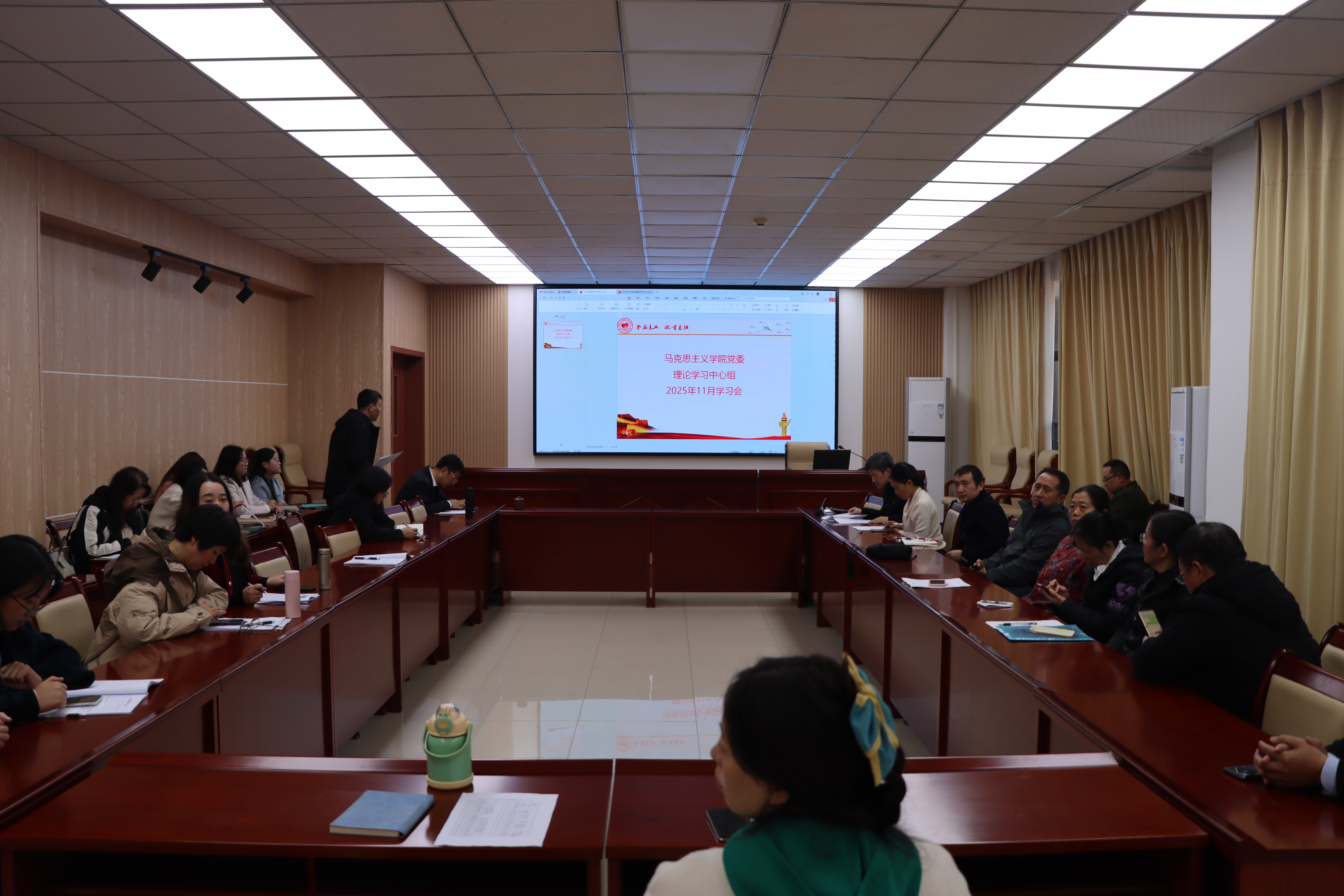 2025年11月28日下午,马克思主义学院党委在至静楼南楼408举行了理论学习中心组2025年11月学习会。院党委书记、中心组组长祝国超主持会议,院党委中心组全体成员参加会议。