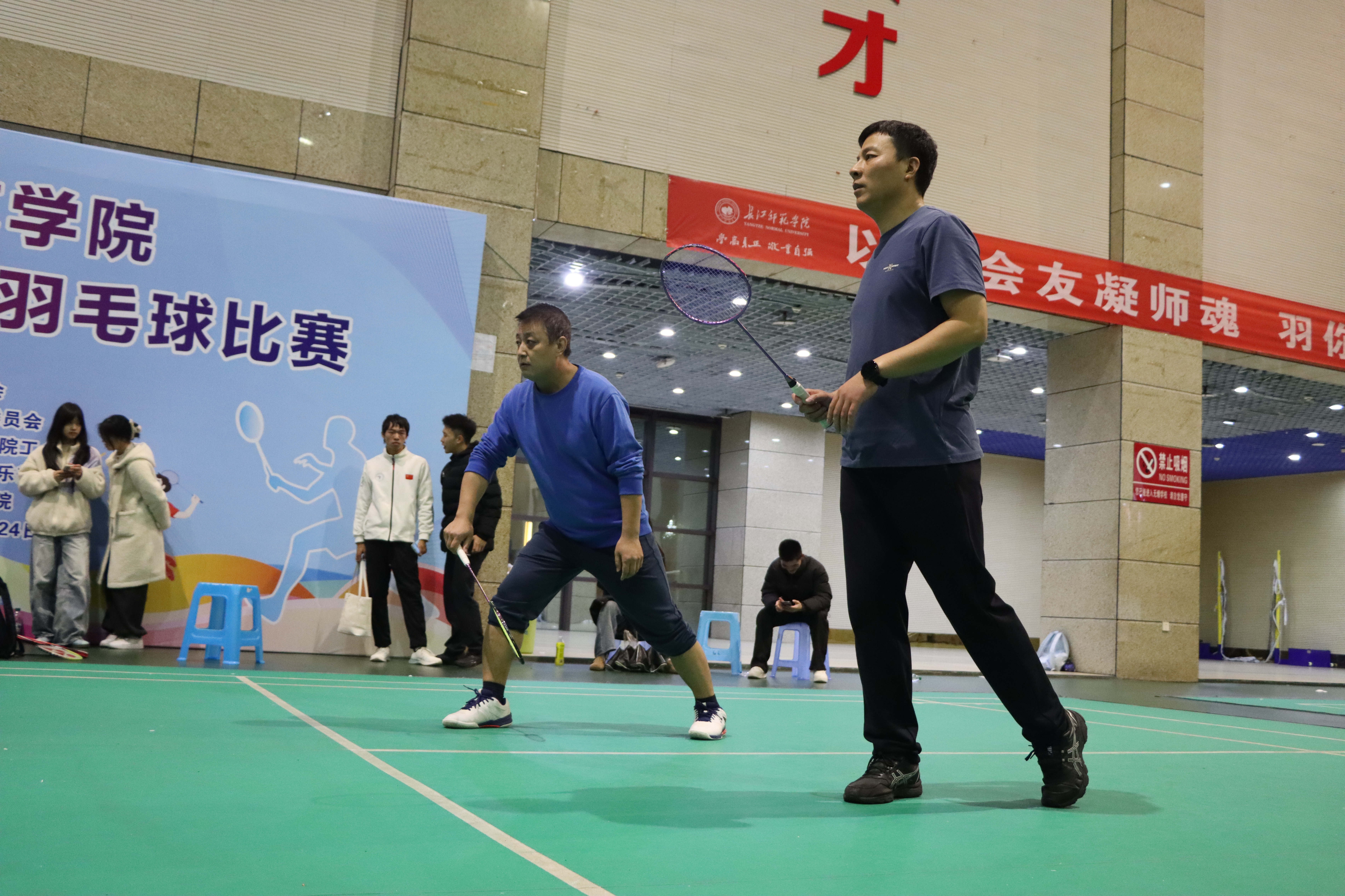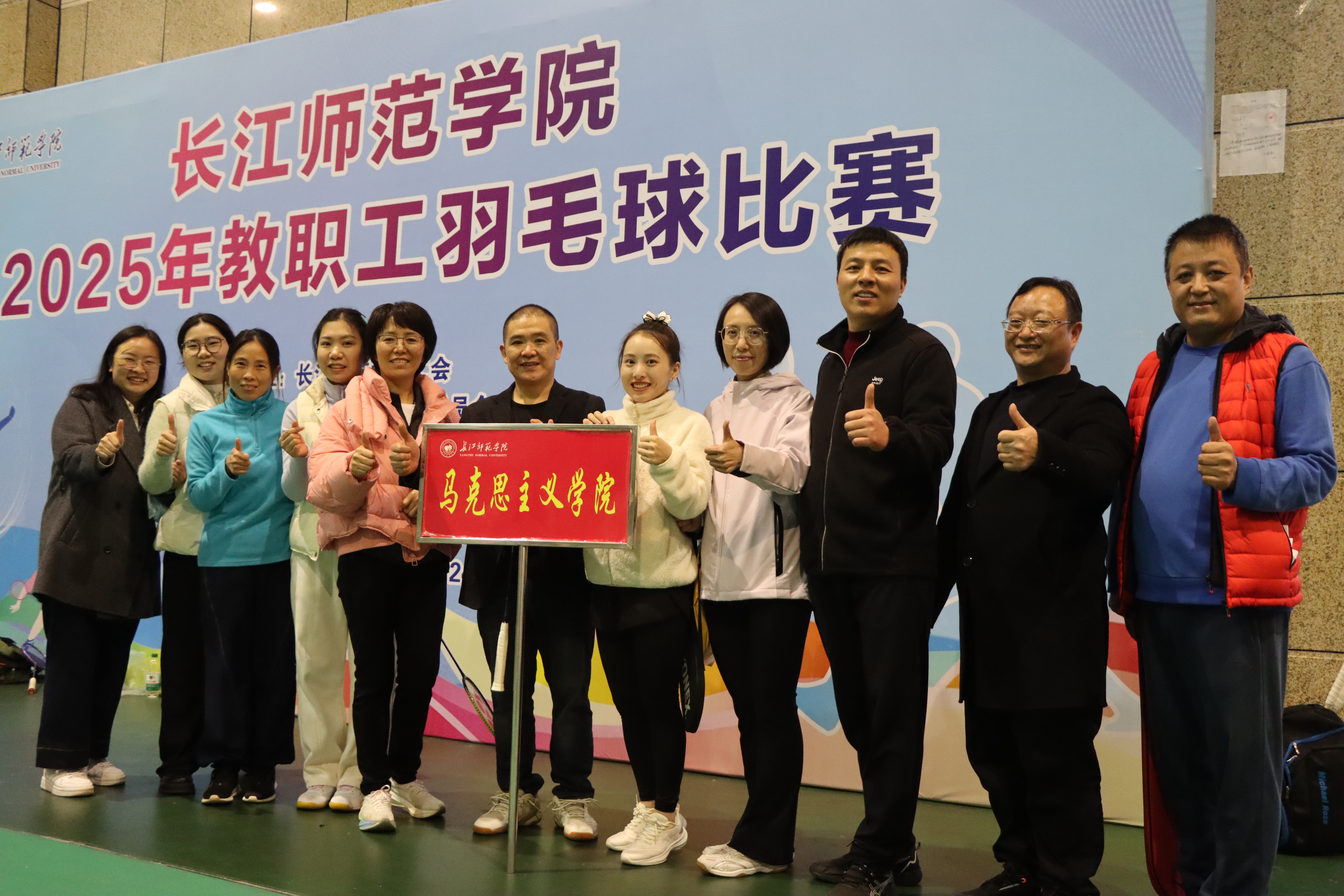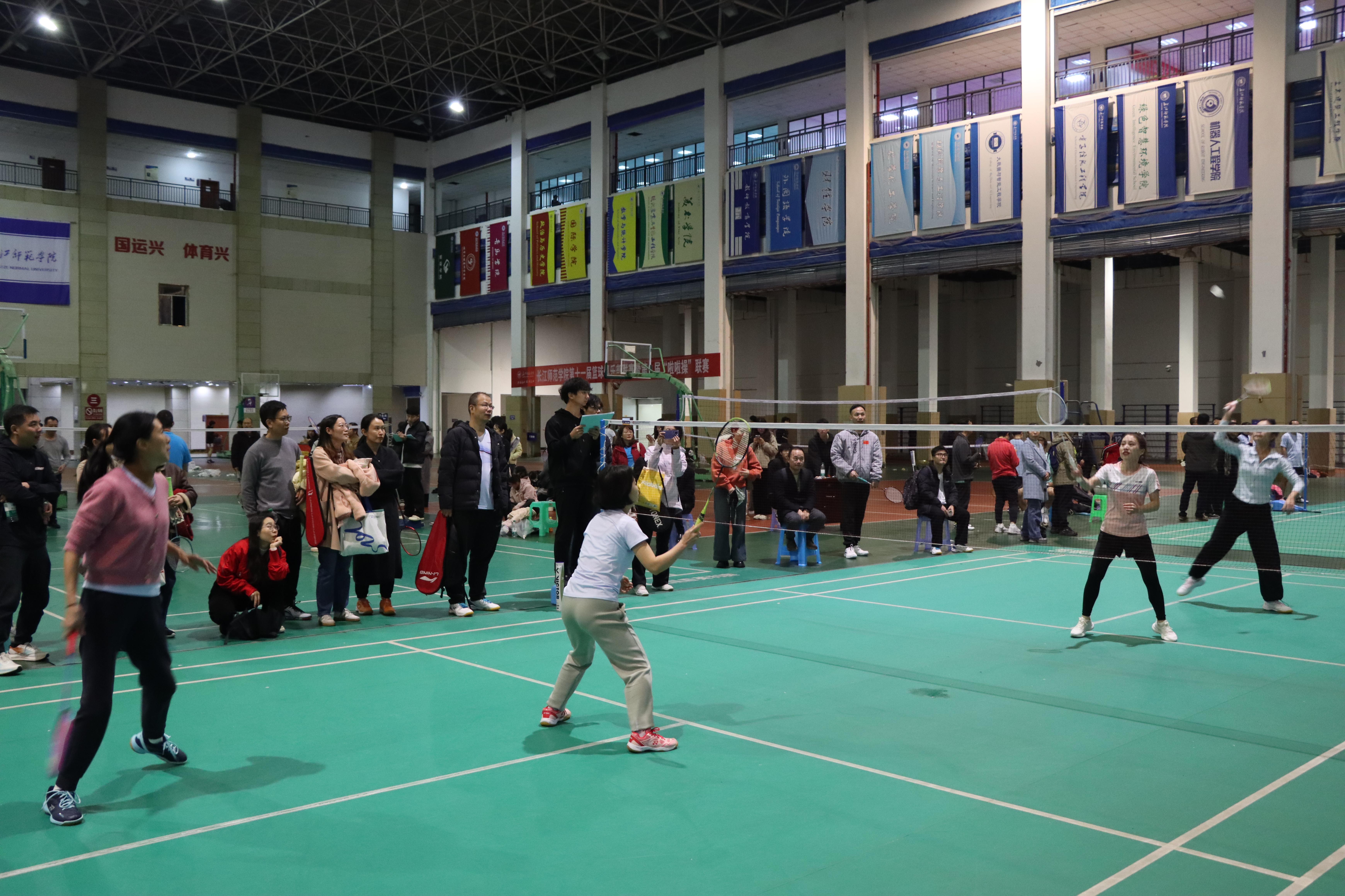 为扎实推进教职工身心健康关爱工程,凝聚奋进力量、厚植团队情怀,进一步营造团结协作、积极向上的育人氛围,11月17日晚,马克思主义学院组织教职工参加校工会和体育与健康学院、学生体联羽毛球俱乐部联合举办的“以球会友凝师魂,‘羽’你同行展活力”教职工羽毛球比赛。本次比赛在弘毅体育馆举行。