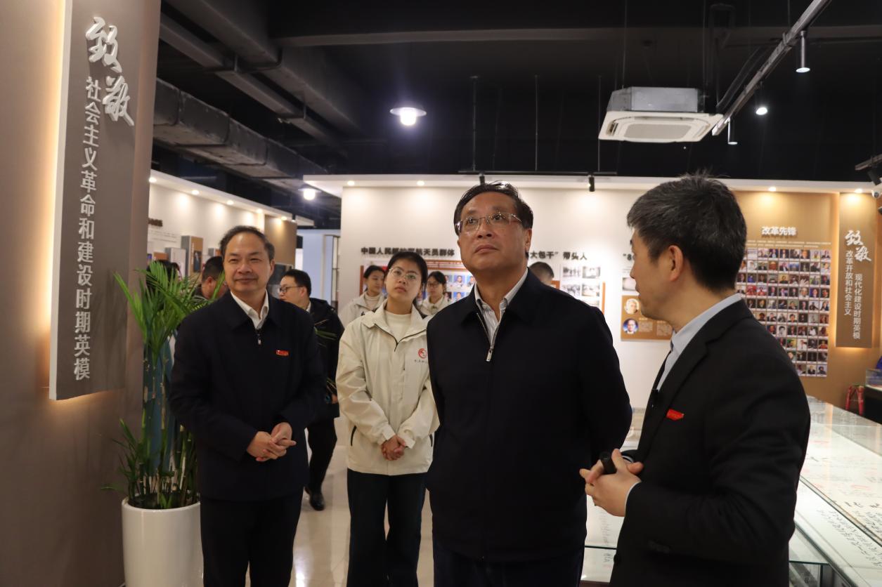 12月19日上午,重庆市市人大常委会副主任沈金强一行参观重庆市“大思政课”实践教学基地——长江师范学院英模教育馆。长江师范学院党委书记黄大勇等校领导陪同考察,长江师范学院马克思主义学院党委书记、院长祝国超全程讲解。
