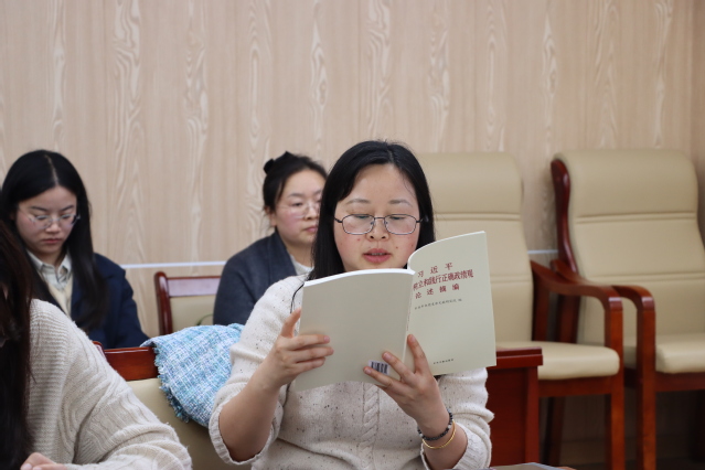 副院长谭晓玲领读了习近平主持的中共中央政治局会议精神;院党委副书记付亚云介绍了学习资料(《习近平关于树立和践行正确政绩观论述摘编》(中央文献出版社2026年2月第1版))的基本情况。