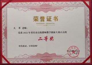 文军老师在第三届重庆市高校教师教学创新大赛中荣获二等奖