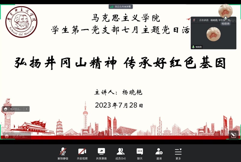 7月28日下午,马克思主义学院学生第一党支部开展“弘扬井冈山精神,传承好红色基因”线上主题党日暨政治理...