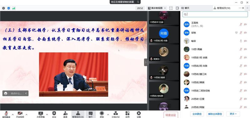 8月19日下午,马克思主义学院学生第二党支部开展“高举旗帜谋新篇,笃行实干开新局”线上主题党日暨政治理...